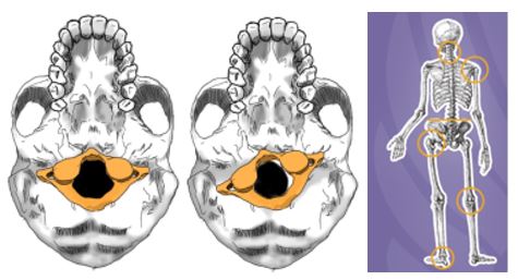 Atlaskorrigering: Sitter hodet rett på ryggraden din? Det oransje i figuren over er den øverste nakkevirvelen som kalles atlas. Den kan være forskjøvet som vist til høyre. Dette kan medføre feilstilling i bekken og hofte, plager i nakke, skuldre, rygg, kjeve m.m.